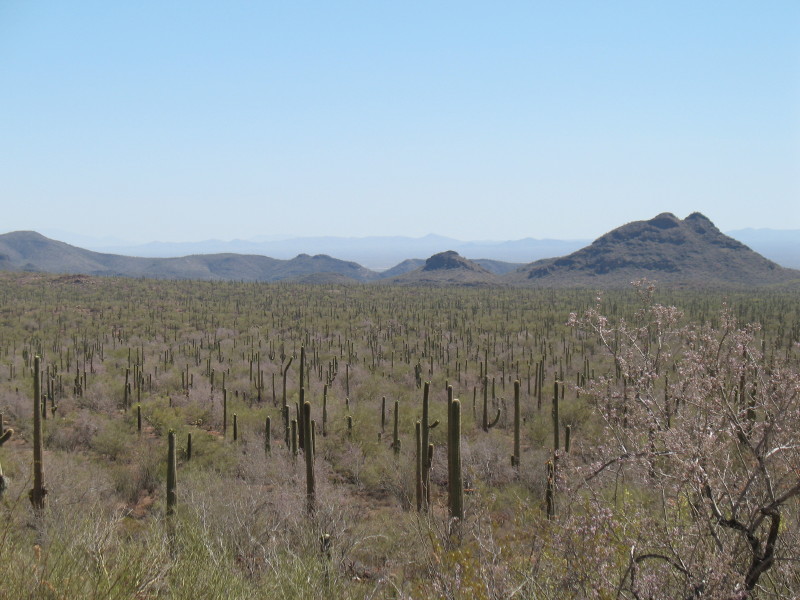 I picked up Df at the airport Monday night. She told me that she had Tuesday off, too. At the crack of dawn, we decided to drag out of bed and go see the Ironwoods. The Ironwoods have come in bloom in the last week and this week has got to be the time to see them at their best. Ironwoods are about the size of the mesquite and palo verde trees. The palo verde are masses of bright yellow blooms. An ironwood blooms in a mass like that, only the colors are generally lavender. They range from white to deep purple. They are even more impressive than Washington D.C. cherry blossoms. The trees are generally 2-400 years old. It is awe inspiring to behold a 6 to 800 year old tree that has survived. They aren’t particularly massive and are often bulldozed in mass by illegal cavalier developers. There are only two intact Ironwood ecosystems left on the planet.