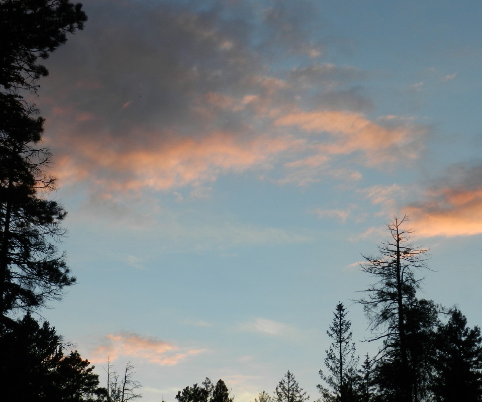 I discovered holes in the cheap dome tent and its canopy. I decided to place the tarp for the net tent over it in case the rain clouds showered us. This worked fine. I hadn’t created the side covers to keep out blowing rain for the net tent. Dinner was in perfect timing. As we finished, a fun rain blew through and then left us in dead silence. This night however, mosquitoes came out in force. We figured that the ruts in the jeep trail accumulate rain water, and give the breading habitat. We had to get dressed to an extent. Eventually, long johns and a sweat shirt sufficed as the air cooled.
