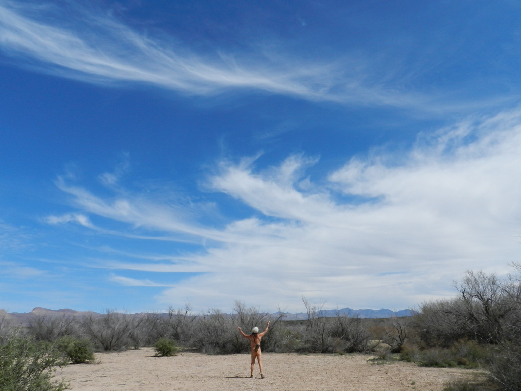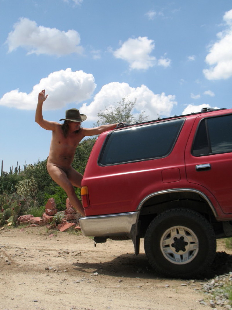 After a not so early start, we arrived on the property. All of the nice spots were taken. There was a larger crowd this time. Then, there, sitting before us, was the spot next to the swimming pool, under mesquite trees, unoccupied! It seemed too good to be true. I pulled in and we began to set up the tent and lunch. There were already a few people skinny-dipping in the pool. We recognized a couple of women from the previous trip. One possible reason that the spot was empty occurred to us, as we realized that the mesquite tree was bleeding its black sap. We had to arrange the tent placement accordingly and back up the car, but it was working out. The ground was soft and the area clear.