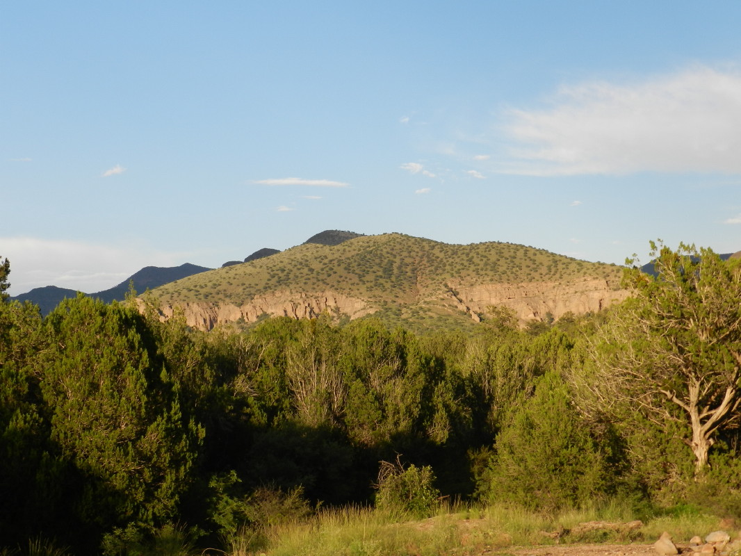 We arrived at the Juan Miller road in the rain, after traveling 60 miles and encountering maybe 6 vehicles. We were now in a warmer high desert area. We made a quick inspection of Juan Miller Campgrounds. They are in a small gorge of very thick riparian vegetation.