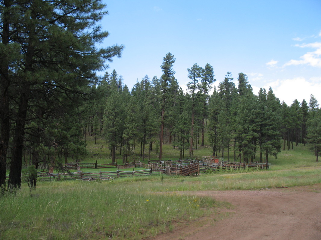 We found a pull-off, a road into the forest, not long after leaving the town, which lead us down into a valley. We were after lunch and to get thoroughly undressed for the journey. There, we found a rustic corral, shade and fun mountain flowers everywhere.