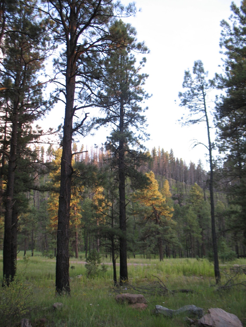 Stopping for a break and a look at the map below Hannigan’s Meadow, we began looking for a spot to camp. It was already four and we had no plan. We continued down the trails, hoping to get lucky. These jeep trails wandered through meadows bordering stands of forest on hillsides. Some of the stands had burned four years earlier and others were untouched.