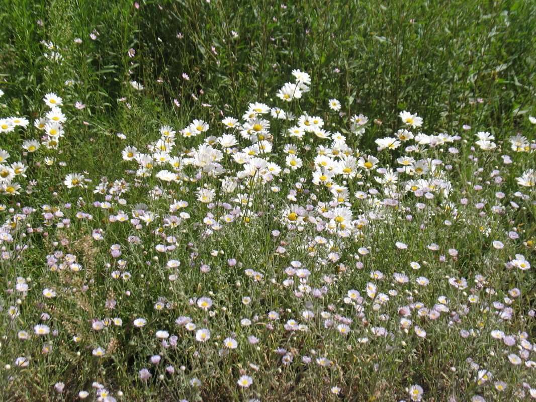 We awoke late the next morning, 8:30am. We both had had a rough night’s sleeping for a part of the night, but awakening into this wonderful tall grass and flowers all around us, cool clear mountain air and trees, started us out with delight.
