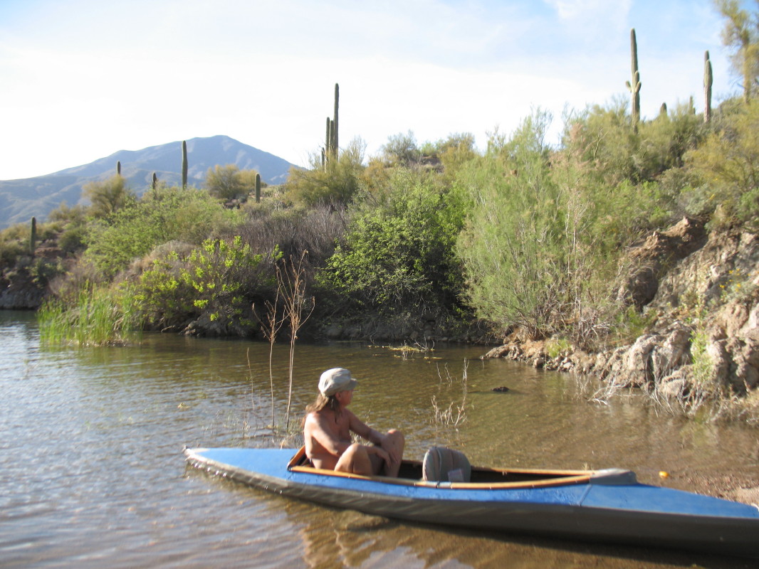 I had spent some time learning to pack the faltboot (a canvas/vinyl kayak) for a camping trip aka expedition. No not into the untamed wilds, but to explore Apache Lake. Apache Lake is north of us, another lake formed by a dam in a canyon which also formed the famous Roosevelt Lake, which is upstream. Roosevelt is huge and popular. Apache Lake is less easily accessible, much smaller, more rugged and fewer beaches.