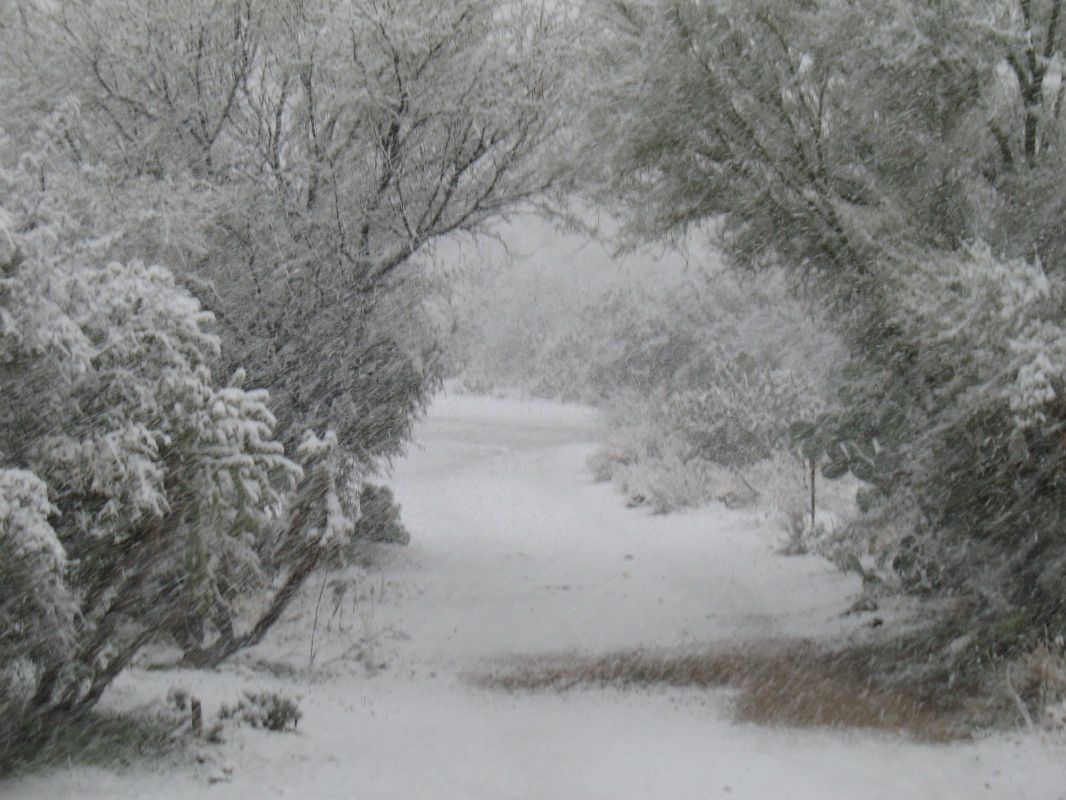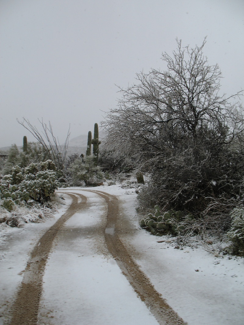 The streets of Tucson were full of people who hadn’t a clue as to how to drive in snow. They were dangerously sliding around. I had headed home to stay away from them all and to enjoy my natural habitat.