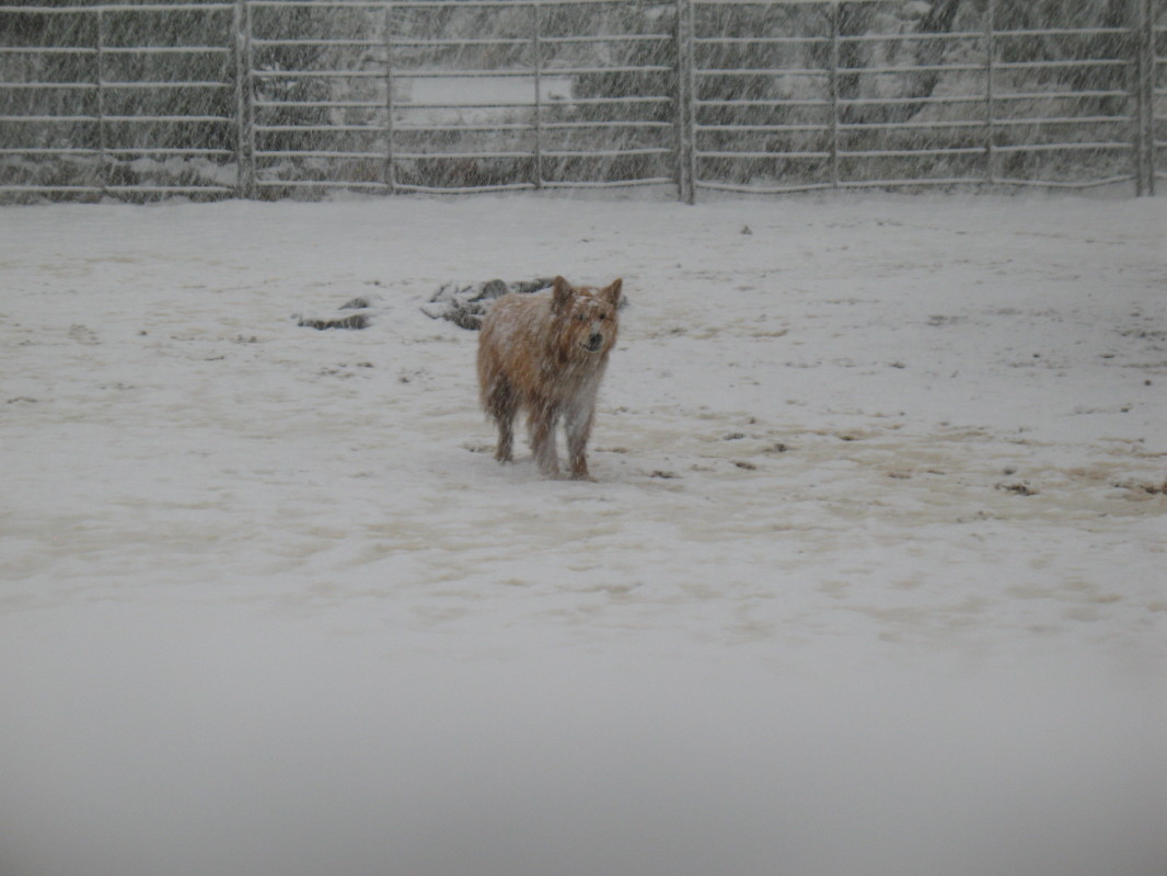 When I got back to the house, I looked in the mirror to see that the large flakes had attached to my sweat jacket hoody. I had a pointy snow dome on my head.