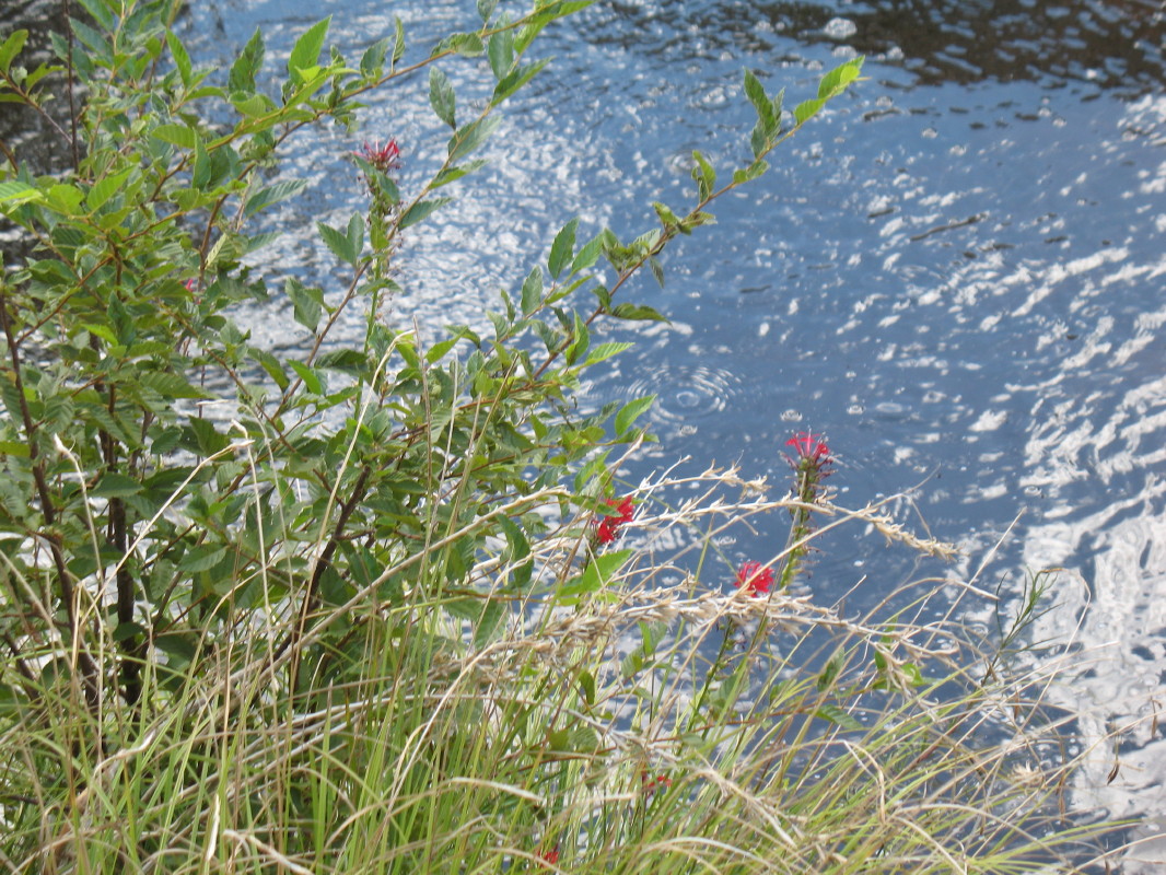 As my reptilian mind subsides from the shock, I think, “so much for your full awareness mindfulness trip, DUDE, keep watching for snakes in the grass!” I check out the elegant creature and take a photo. Camera out, I’m getting ready for a pic to document the flowered tree-like plant’s size and I’m startled again. It doesn’t quite get me going like the snake did. This time, it is two women popping out of the thick foliage. There just isn’t enough time to rest the camera and dress. I’ve only got the wrap held in front of me as they approach. They watch as I arrange my attire. I explain, “I didn’t expect to see anyone.” The reply is, “no problem.”