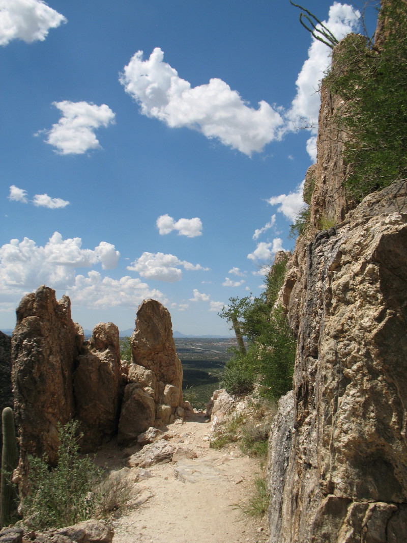 I decided that I had enough information to just go it with no guide. The general temperatures should be 10F degrees lower (low 90F’s) that day and would eventually be cooler still, with the elevation gains. It was Friday, not a weekend, and the monsoon was in a reprieve. I figured that the hike back would be in the mid-day heat and there would be fewer textile hikers, even though this is a popular trail. The sun beats down as the slope faces west. Seize the moment, Carpe Diem.