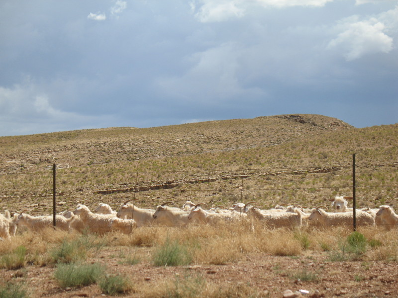 DF is driving, unusual on a trip, but still has her clothing on from our two stops. I’m compelled goad her about driving cross country naked. She pulls over. I take photos of Navajo sheep watching us, as she disrobes properly, within seconds.