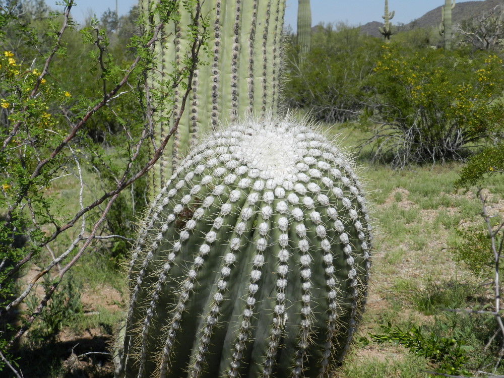 We coursed through the desert on old familiar roads. I had owned property out there in the later seventies. The roads had been paved, patched, re-patched and now, in disrepair. There were more homes out there, but when we hit the dirt in Ironwood National Monument, it became something else. There was no abundance of blooms, but the clean protected forest of ironwood trees with its saguaros of infinite personalities was delightful. There is a nice carpet of low growing plants from the rains, which have the look of grass lawns. The reddish soil highlights in contrast. This is Sonoran Desert at its best. The vibe was a healthy natural environment.