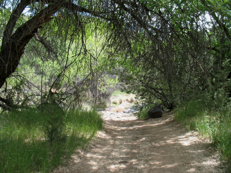 This has been a road, a jeep trail for many years, which leads to the Verde River. Still, it is used, although there is a great deal of technical challenge. Much of the road is directed straight down the stream bed, sometimes climbing out to a smoother surface through the forest and small meadows.