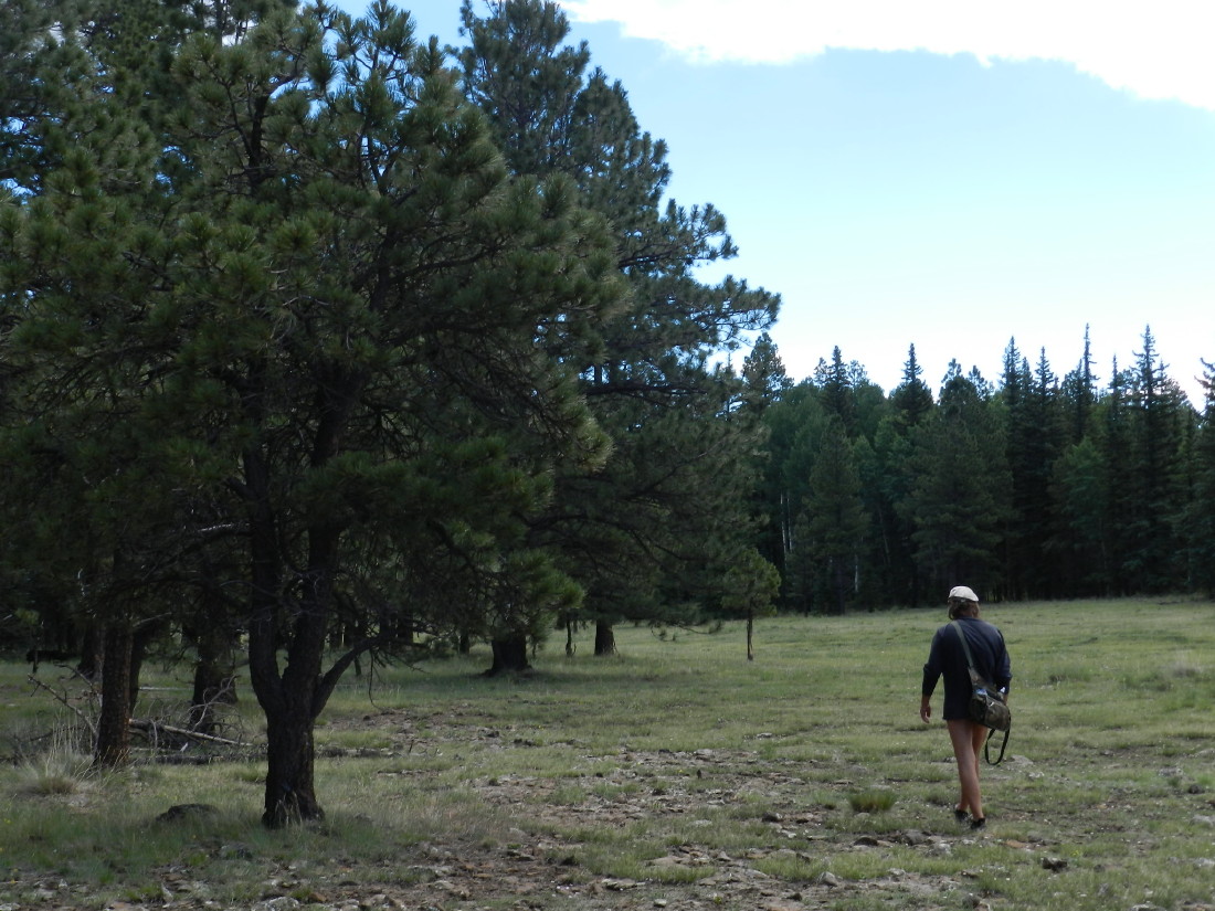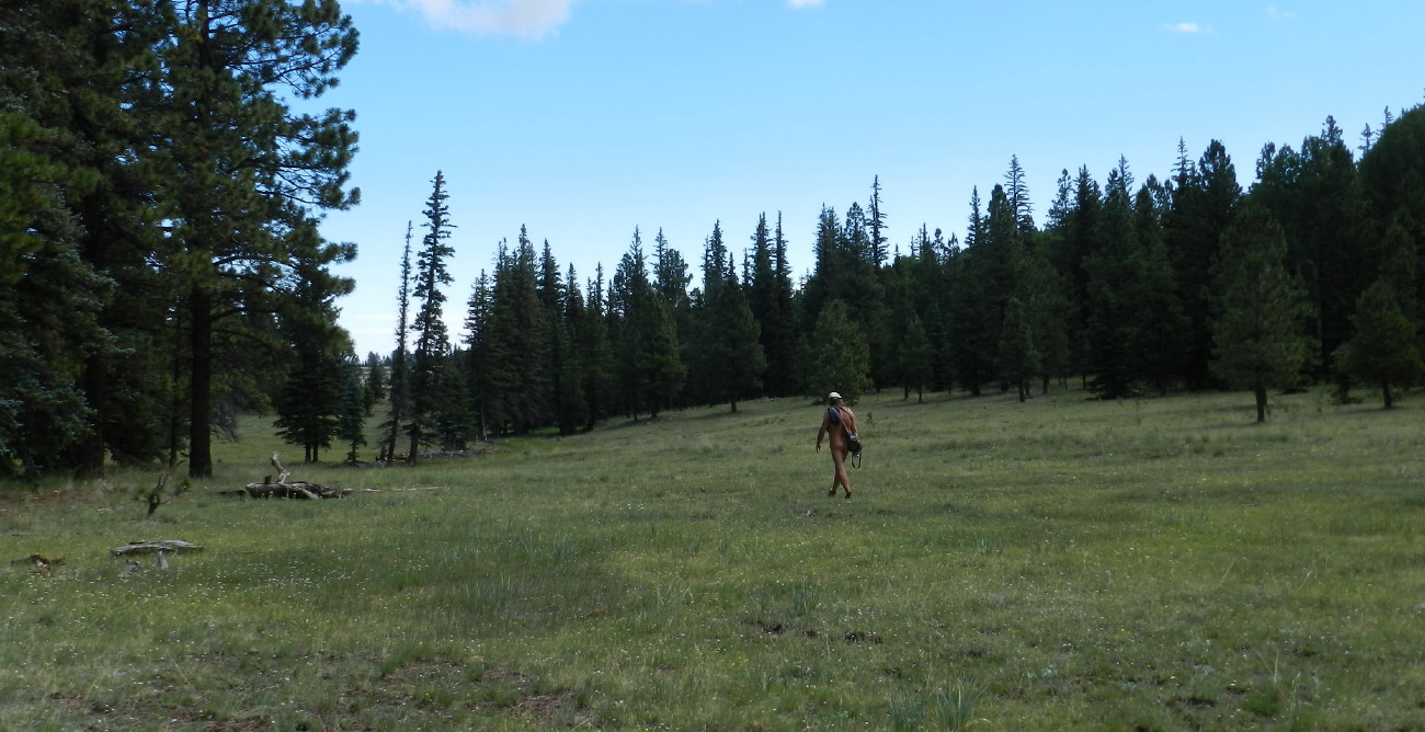 The insects are busy. A swarm of bees occasionally passes by, putting naked me on alert.