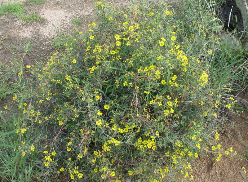 I have left this morning for Havarock. I take my camera, hoping to grab some shots of the foliage while things have blooms. There has been an expected change in the last 7 days that we have been gone. I could see it coming before we left on our vacation in the wilds. The feel of the blooming mass of Spring has dissipated. It is because blooms don’t last forever and there has been no rain. Now, the transition to the succulents, Palo Verde, then Ironwood, saguaro and warmer temperatures will replace the many smaller annuals and biannual plants of earlier spring. This has begun. Buds and occasional flowers are attached to the cholla and prickly pear. The mesquite trees have yellow blooms dangling among the new florescent green leaves. Soon DF’s house in town will have a layer of yellow pollen everywhere, to be replaced by an abundance of bean pods, and thoughts of their healthy brown flour.