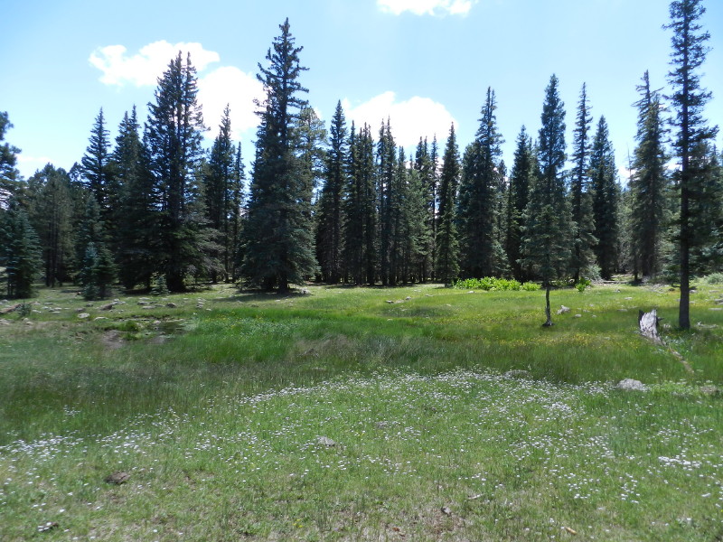 We wander on down the trail into the forest on the far side of the meadow.