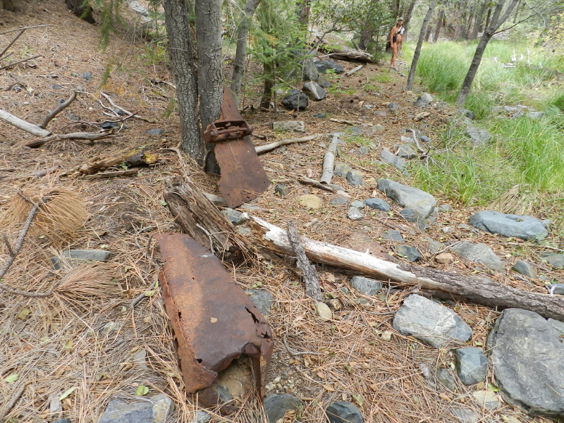 We find old pieces of rusting metal, sometimes covered with refuse turned to soil and buried in moss.