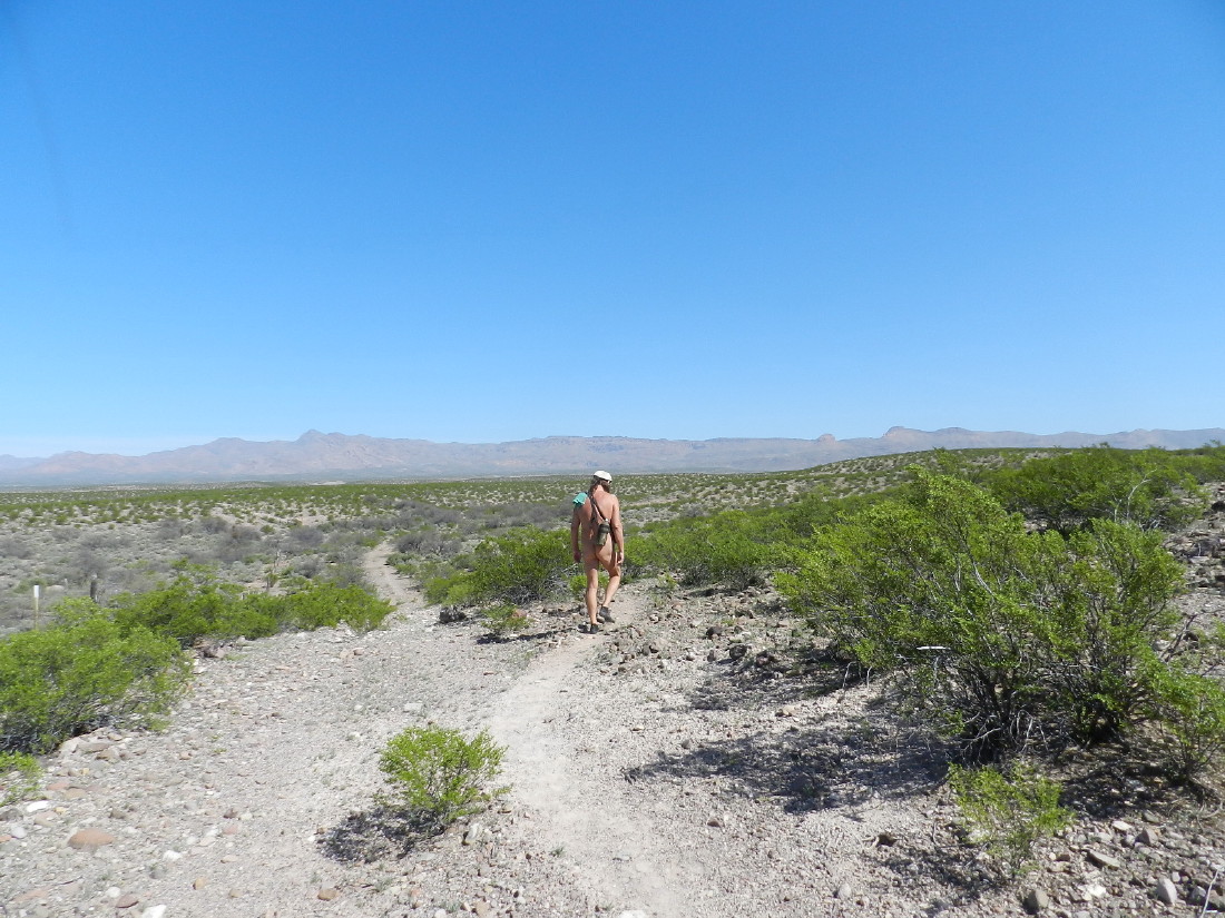 We wander around naked through the creosote covered hilltop, dancing as we stroll, gazing across the vistas.