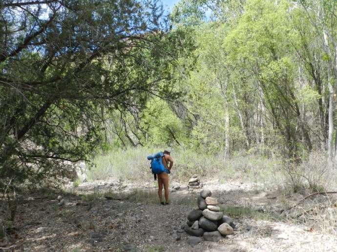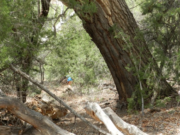 There is a well-marked path through this canyon. Where vegetation, or stone surfaces make it disappear, cairns have been placed. I had read that the keepers paint the trees blue to identify the trail during rainy flooding times.