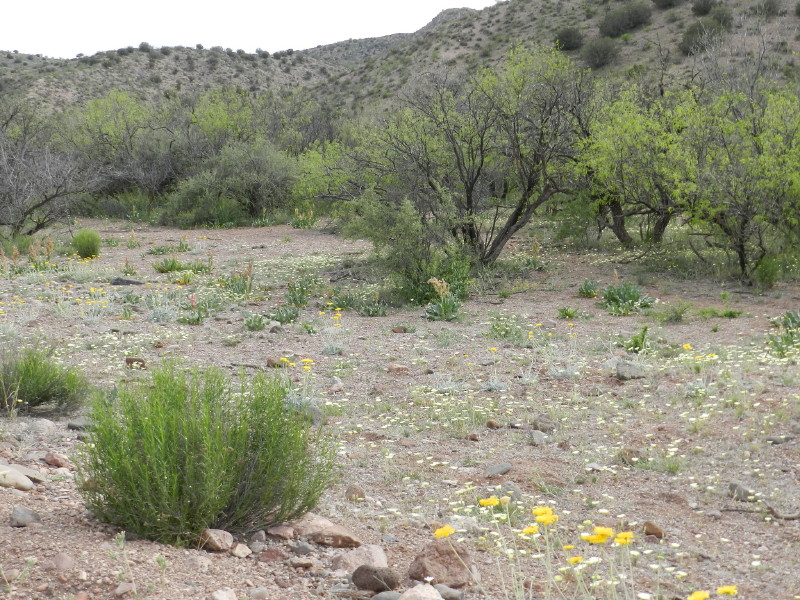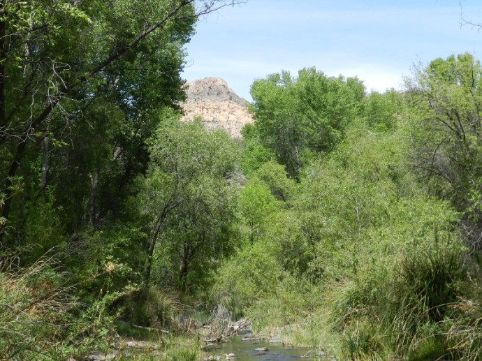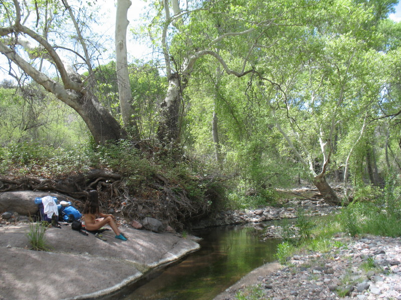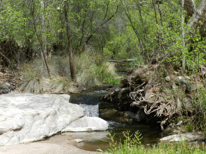 Where there is a kiosk with sign-in sheets, we park again. The sign-in sheet’s last entry was four days ago. They had spotted a pride of eight coatimundi. This was a good sign that we would be alone on Easter weekend. This is another area that has been bought by the Nature Conservancy to preserve the riparian habitat’s treasure. It is known as Hooker’s Hot springs. There are casitas with the hot springs for rent on weekends at the old ranch complex.