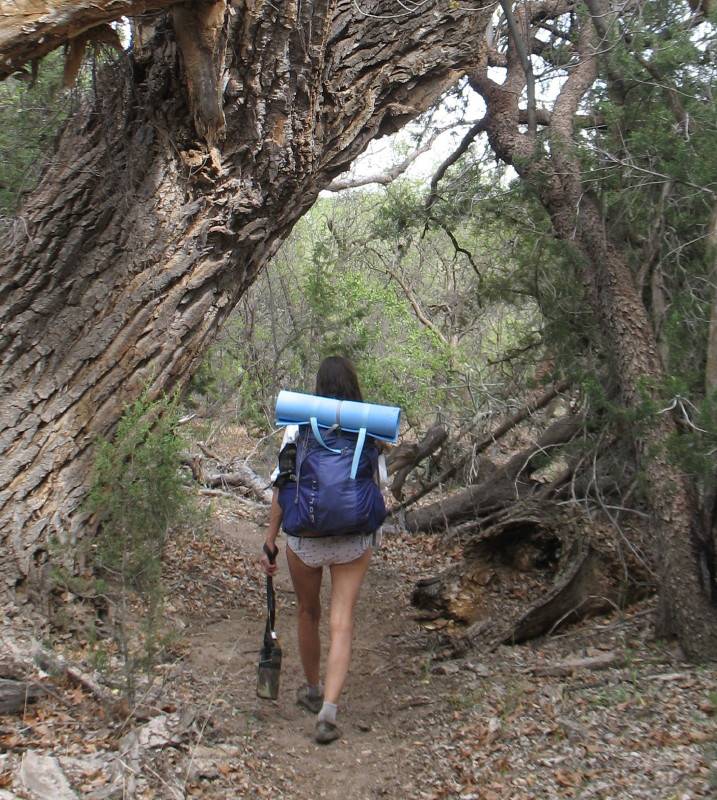 I have created a system that is ultra-light, but still, the water that we carry brings us to feel the extra load compared to a day hike. We are not sure what is in store. We don’t know if there is water ahead. I simply drape my sarong into the shoulder strap in the ready, don my hat and I’m ready to roll. DF decides to wear her white shirt to comfort her shoulders and shield from the sun. After locking the truck; we are off. Thigh muscles tighten and my feet now feel the extra weight, but only slightly. Obviously I need the exercise.