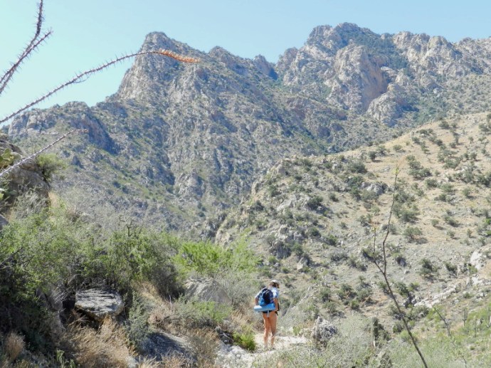 The first mile passes quickly. It is wide and an easy grade. We stop at the one lone bench at the end of this trail and pull a snack out of the bag. After food and rehydration, we begin the harsh descent up the Romeo Canyon Trail. I’m going to jump into a few anecdotes along the way.