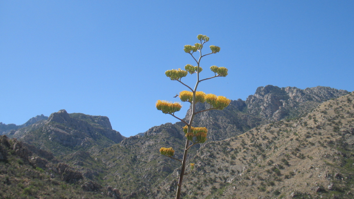 Here, we are in a dry land with colors of browns, orange, grey and any manner of green earth tones. But there are those rich colors that one wouldn’t think would exist in nature. Here, by itself, in its own distinct glory sits a lone towering agave, psychedelic yellow, high and prominent. It is showing off. In one grand stand, once in its lifetime the stalk has risen a dozen feet and it blooms in mass.
