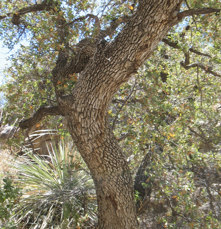 The sky is in its wonderful turquoise hues, a backdrop for a winding meander of an venerable old alligator juniper overhead.