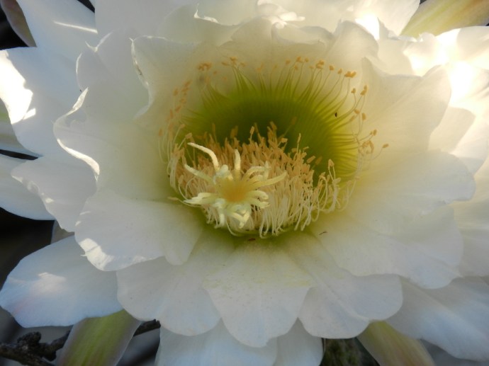 A couple of nights each year my San Pedro cacti bloom. We have to observe them at night, or early morning twilight, so in stealth, undressed we do it.
