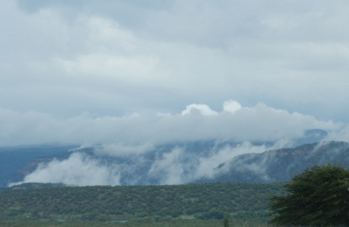 Ahead, there is a mass of low clouds hanging and marking the valley of the Salt River Canyon passage. I hope that the treacherous descent and ascent back out, isn’t in a thunderstorm.