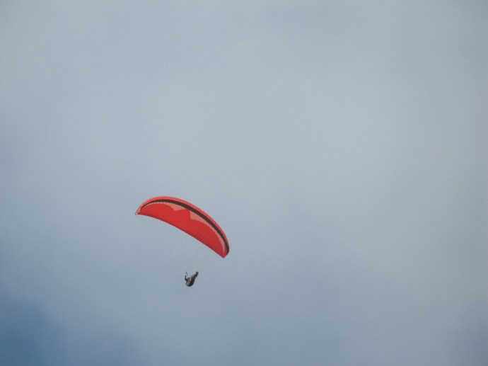 They float off of the cliffs above. The sand is soft and we bake in the sun. One glider ends down on our beach by mistake.