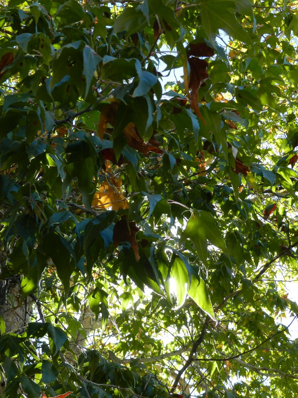 We lay there tranquil gazing up at the leaves above us. There are the beginnings of fall colors in the mix.