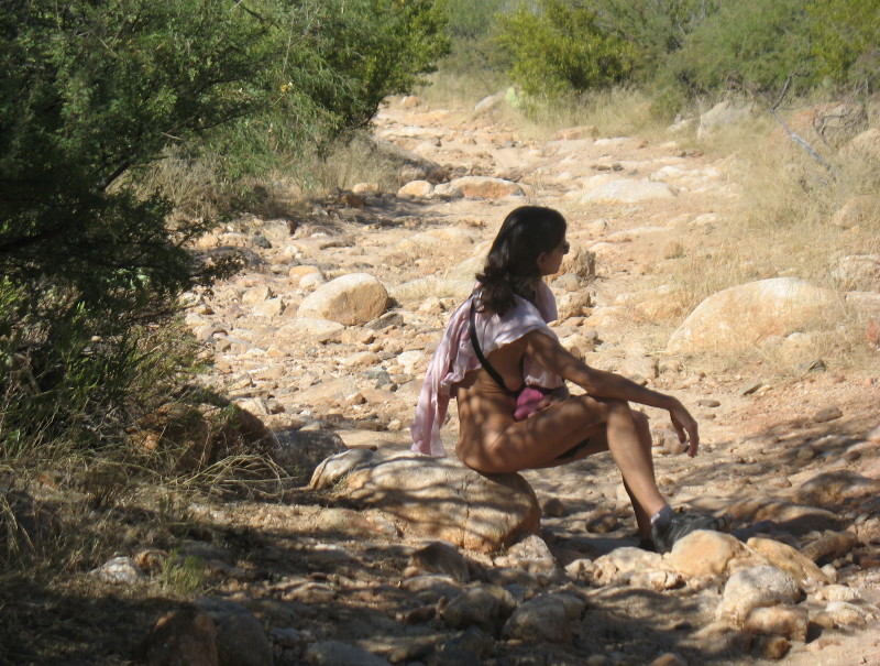 It is Halloween weekend. We start out attending a costumed event as a pair of famous naked people. Sunday, we decide to have a hike up the Sutherland Trail at the foot of the Catalina Mountains. We have to be back to my place by 2pm to host a community sweat.