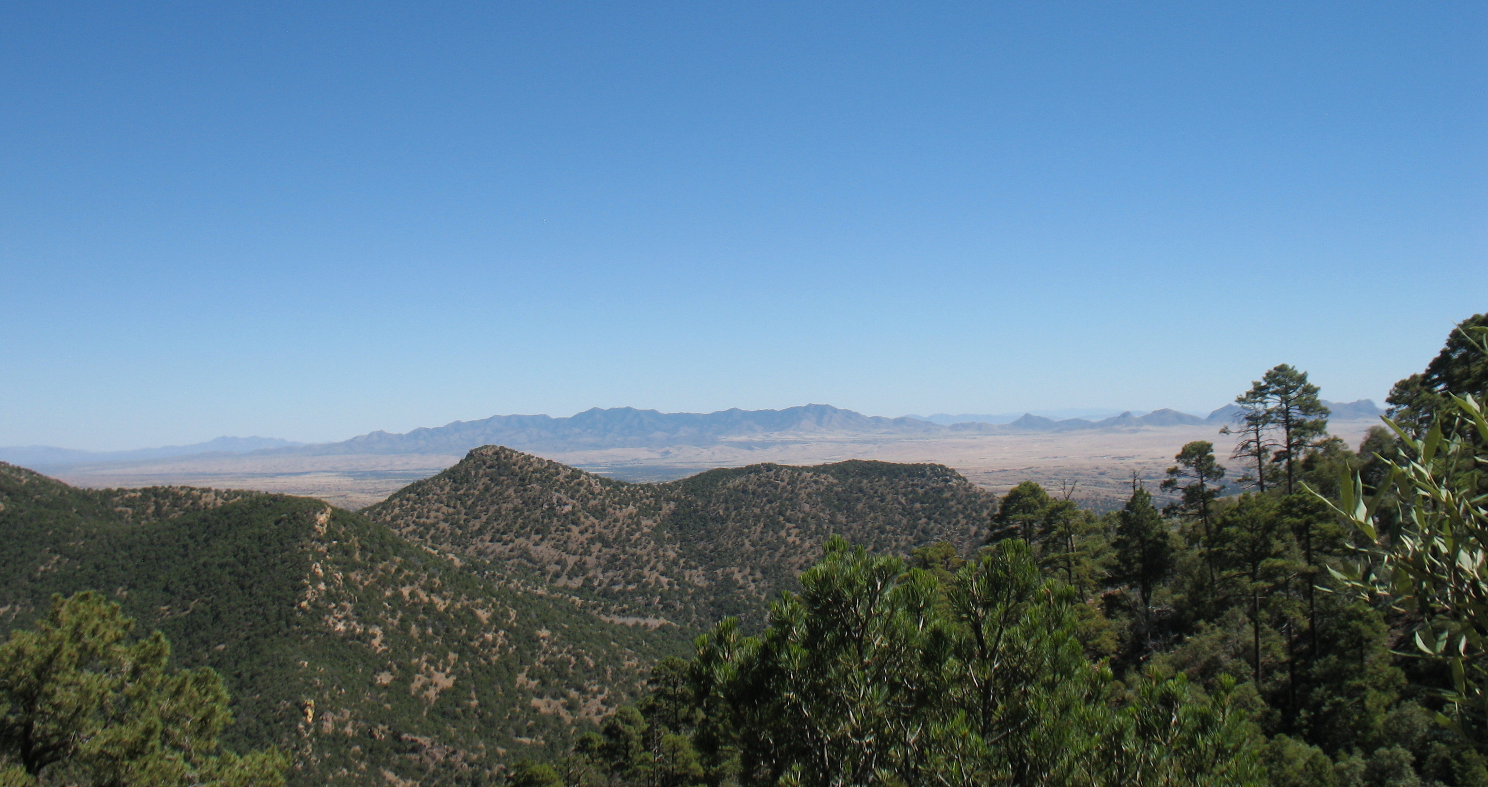 We stand and watch the vistas before us, again, identifying the many mountain ranges. We can see mountains on the New Mexico border, and that far into Mexico across the international border. The amber grasses stretch between them. Hills which are filled with green trees are below us, then they meet that grassy golden plain.