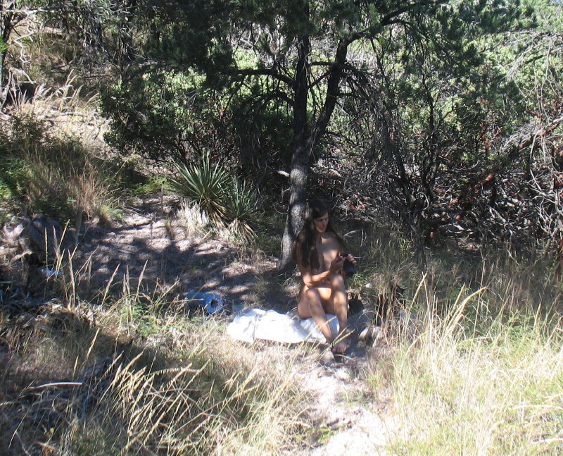 We had taken to this experience as an experiment with every intention to encounter others as nude hikers in a brave and open spirit. Wouldn’t you know? We have seen not one other soul this whole day. This mountain is all ours. I had chosen it years ago, as a place where I thought that we could be free and unencumbered. Yep, wouldn’t ya know, that that is what we’re getting today?