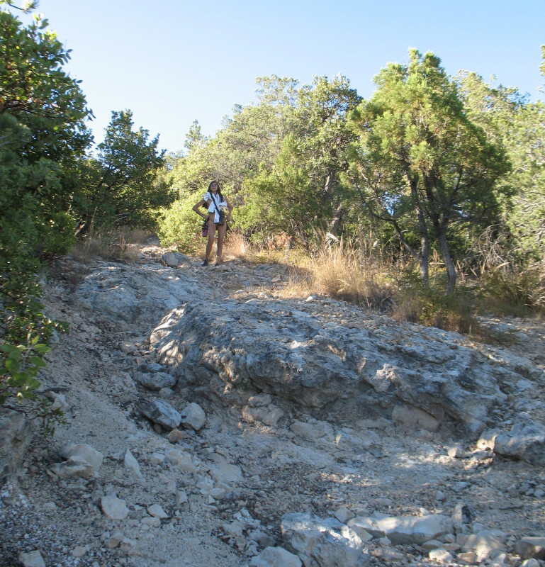 We find a row of rocks, like a step in the middle of the trail. DF places a shirt on it and we sit to rest and take it all in.