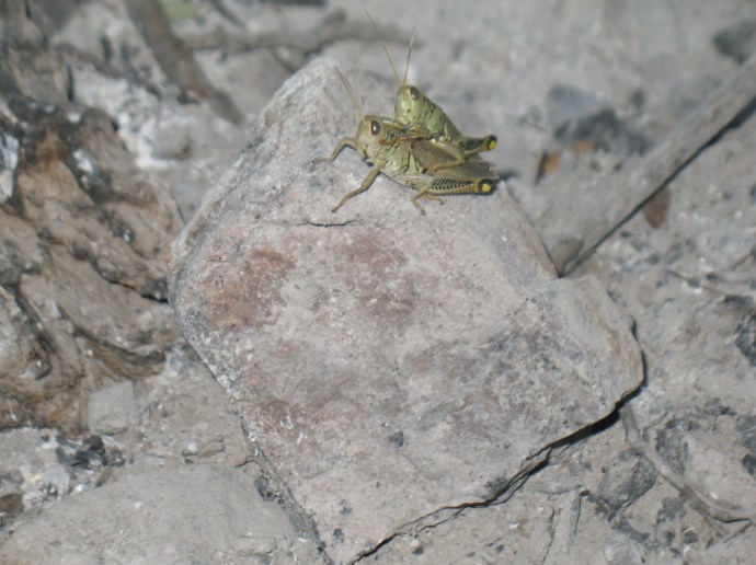 The little canyon has an infestation of very large grass hoppers. Some are four and five inches long. They are colorful.
