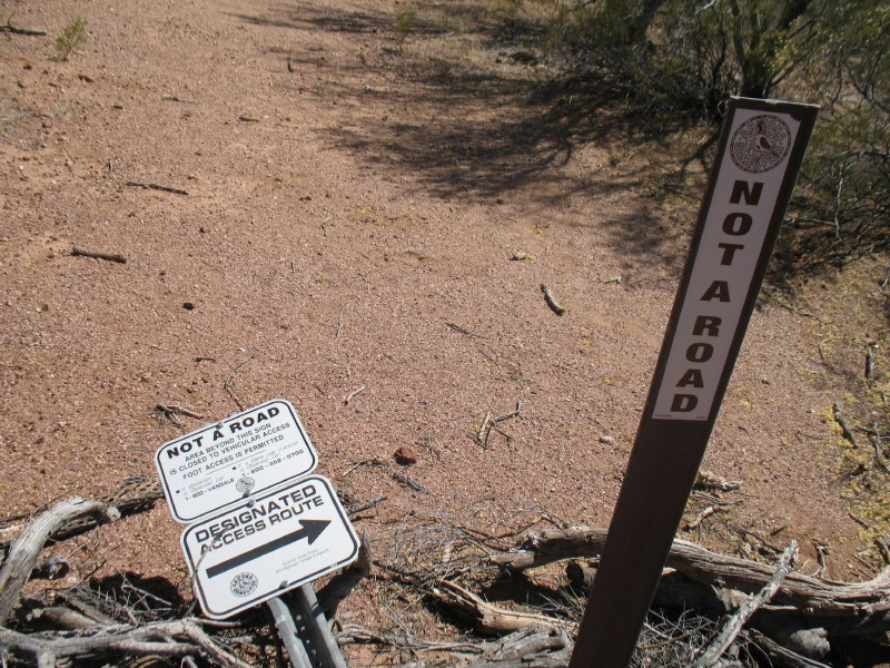 I find the old jeep trail that used to lead up into the foot of Ragged Top, the rugged monument of granite that distinguishes itself on the horizon for miles. It is now blocked off and signed.