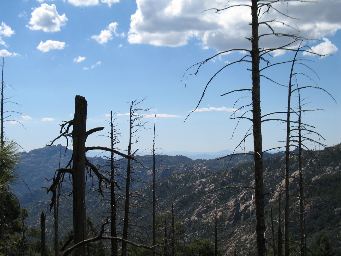 The big Mt. Lemon fire which had devastated the nearby town of Summerhaven is evident from place to place.