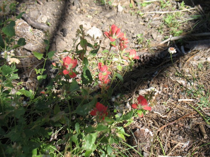 I get what I need and with that, I then relax and enjoy the place. I listen to birds. A hawk keeps calling. I am entertained, watching light and leaves do their dances. I grasp occasional passing bouquets of pine and other various scents and take awareness of the feel the air with all of the bodily senses at hand. Beautiful. This is not my usual desert where trees fall into the trail.
