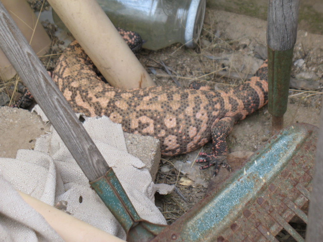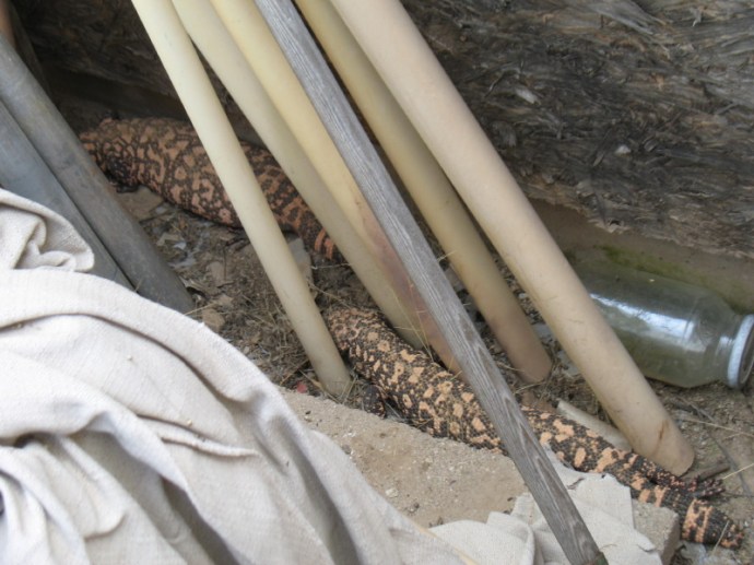 While we were creating the door, coincidentally, a Gila Monster showed up in the shed.