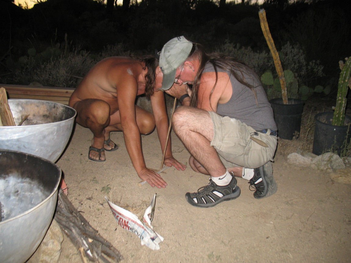 The first fire was begun in a sacred manner with traditional tools of saguaro wood and seep willow, which were carved into function by a knife.