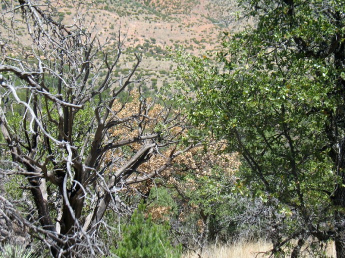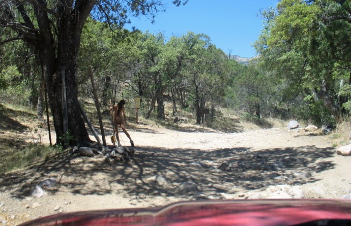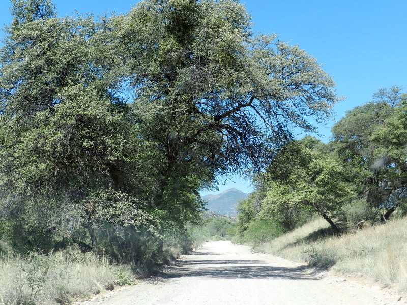 This is more and more lush. As the elevation rises, alligator juniper and scrub oak forest appear. These form a canopy and shade begins to cross the road.