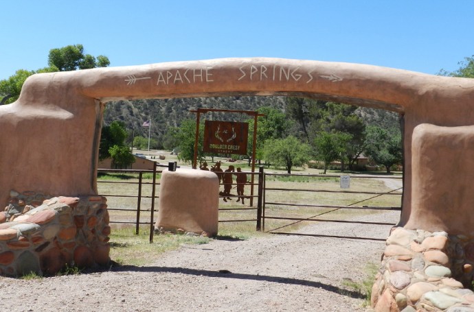 We pass a huge complex of a ranch called Apache Springs in the valley to the left. It looks prosperous with its pond, taller cottonwoods and many acres of fenced horse corrals.