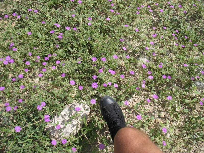 Judy is a person who tends to jump into her endeavors and passions with both feet. She has cast away everything but a pair of sneakers and a sun hat. I carry our water. As she marches resolutely onward, I mention that a wild animal might carry off her curiously smelling article of clothing. I ask, would she like to hang it in a tree. With her eyes forward, resolutely, she states that she doesn’t care.