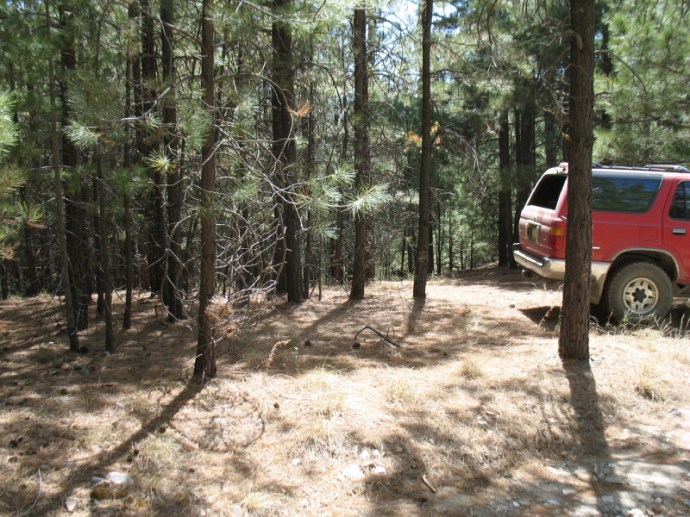 I make my way to the crest of the nearby hill next to the dirt road. There is a large log, an old fallen ponderosa pine, to use to hide me. I peer over, not expecting anything, but I am shocked. Six vehicles are parked on the other side of the road. They are practically neighbors!