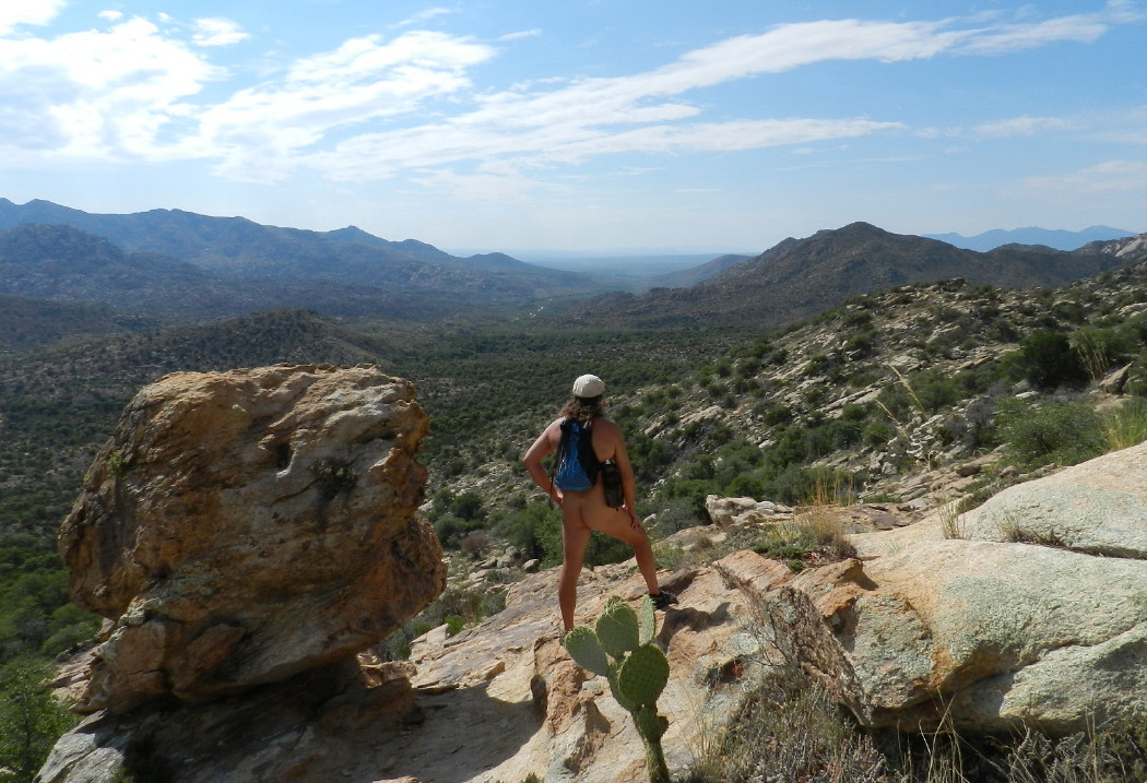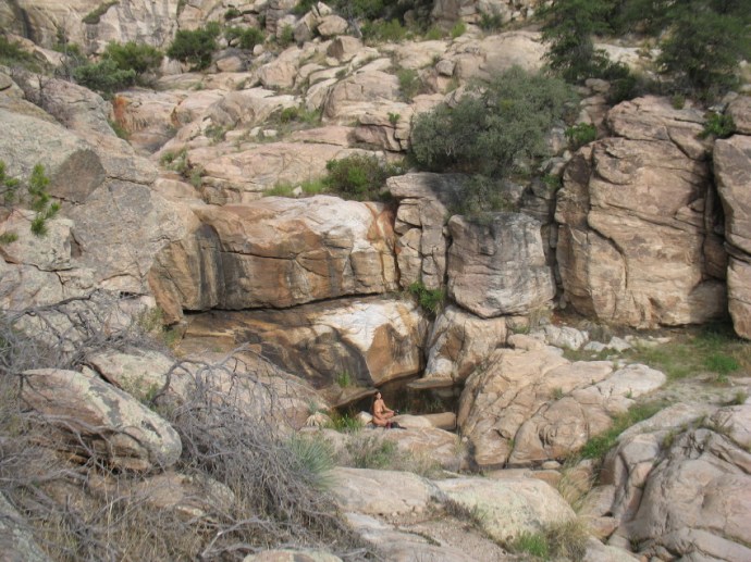 It is always good to have a backup plan to assure nude friendly weather conditions. We had plans to visit the top of Mt. Lemmon, but monsoon thunder and lightning storms are predicted this weekend. Our alternative is to not campout, but we’ll do a day trip instead. The prediction in the Rincon Mountains is heavy showers, which may cause flooding after 11am and before 11pm. This generally means that the creeks will run. There will be this break in the morning, before more rain. We will also enjoy cooler temperatures.
