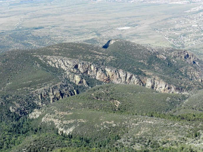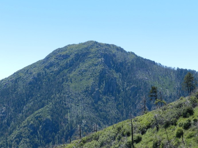 Slightly taller, across a very deep canyon, the dark green mountain is impressive. It hides all that is south. It is a matriarch, the grandest mother in the range. Only a section of Mexico is allowed to peek out from around her outstretched skirt.
