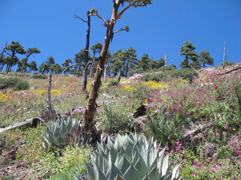 From our perch there is a plummet thousands of feet below into the deep canyon where shadows are the norm. To the southwest, green alpine-like fields roll into Mexican plains further on. Then, in the rock formations, all about, there are bouquets of different flowers. As if in a daze I hear my voice, “I can’t believe how beautiful this is.”