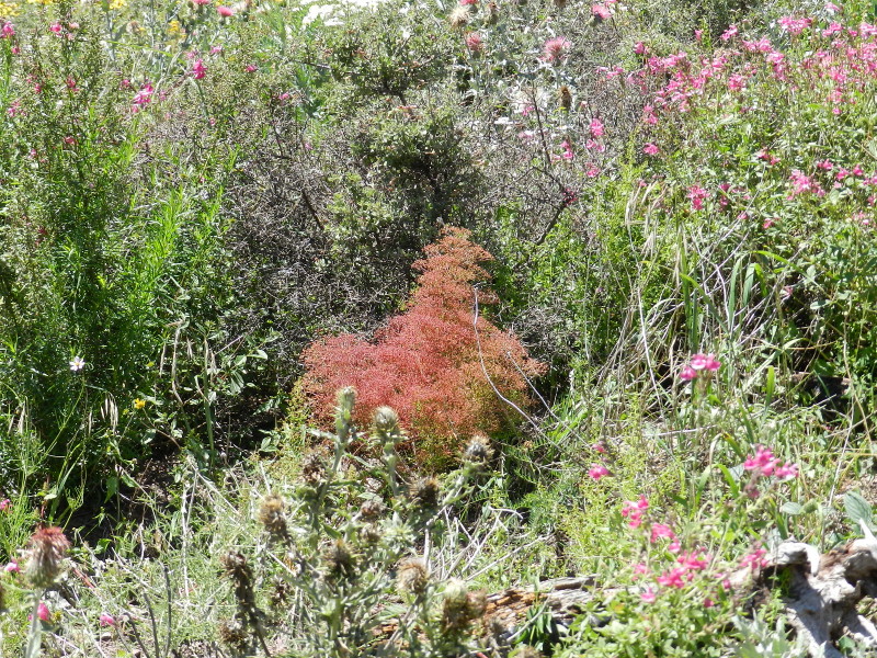But, we have just accomplished something. We now know that we can make a pilgrimage to the top of Miller Peak in two weeks. We are not too old, too worn out, or too out of shape. This place is wonderment and is the living definition of the word renewal. The idea of a perfect storm could define our day, but just the opposite, it has been the perfect something else. All factors have combined to bless us with the few days of peak flowering bloom, and the richness of diversity. It is not too hot, nor to cold. This day has been just right. If we had found our way and come up here to the peak first, we may not have enjoyed the side jaunt and learned about the nature of the coming trail.
