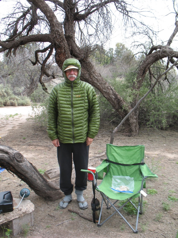 We have had the intention of staying at the Hot Springs for four naked days with a Friday trip out to Bonita Creek for a hike and exploration of that canyon. The weather has turned cold and sustaining northeasterly winds have tortured us. Our hike has now been changed to Sunday afternoon, when the temperature is forecast to rise above 70F and the winds will drop from 20mph plus to 9 to 13mph. I have hope that the narrow canyon with sharp steep walls will have the winds caught in tree tops, if it doesn’t just swish over it.