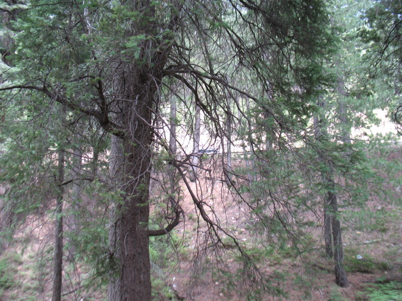 There is one drawback. The highway is just above. Cars pass by. They are in plain sight, but no one is looking down here. A guardrail blocks most passersby’s vision. There is the sound, however. Occasionally the forest erupts all around with the noise of a Harley Davidson cruising on the curves enjoying the feel of the open highway. They are as loud as rolling thunder in a quiet forest. It echoes through the woods no matter where you are on that mountain, even a quarter mile away. It is as though everything stops and then gratitude and relief comes as the noise fades off. The deer relax their ears, alarm fades away.